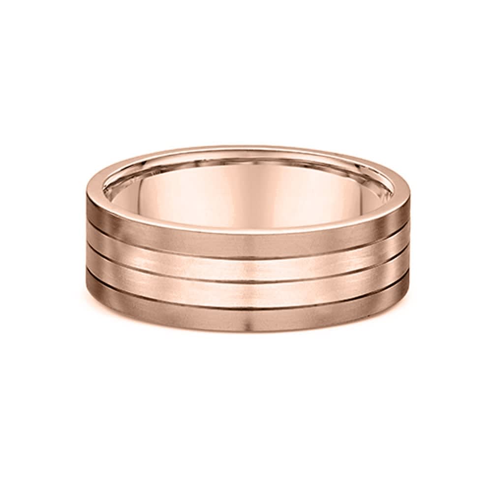 This ring showcases a modern and sophisticated design, featuring a sleek band with a striking combination of finishes. The contrast between the smooth polished center and the subtly textured outer edges creates a refined, contemporary look. Its clean lines and balanced proportions give it a bold yet elegant presence, making it perfect for everyday wear or special occasions. A timeless piece that blends simplicity with distinctive style. All Temple and Grace jewellery is beautifully crafted to the highest standards and is made at our jewellery workshop directly by us (skilled jewellery craftsmen). This is why you can save over 40% when compared to high-street retail prices. We also offer a lifetime warranty and unmatched 100 day returns. You can shop online or book an appointment to visit our jewellery boutiques in Sydney, Melbourne, Brisbane, Perth and Adelaide.