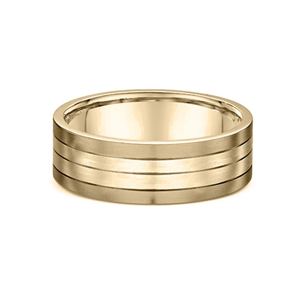 This ring showcases a modern and sophisticated design, featuring a sleek band with a striking combination of finishes. The contrast between the smooth polished center and the subtly textured outer edges creates a refined, contemporary look. Its clean lines and balanced proportions give it a bold yet elegant presence, making it perfect for everyday wear or special occasions. A timeless piece that blends simplicity with distinctive style. All Temple and Grace jewellery is beautifully crafted to the highest standards and is made at our jewellery workshop directly by us (skilled jewellery craftsmen). This is why you can save over 40% when compared to high-street retail prices. We also offer a lifetime warranty and unmatched 100 day returns. You can shop online or book an appointment to visit our jewellery boutiques in Sydney, Melbourne, Brisbane, Perth and Adelaide.