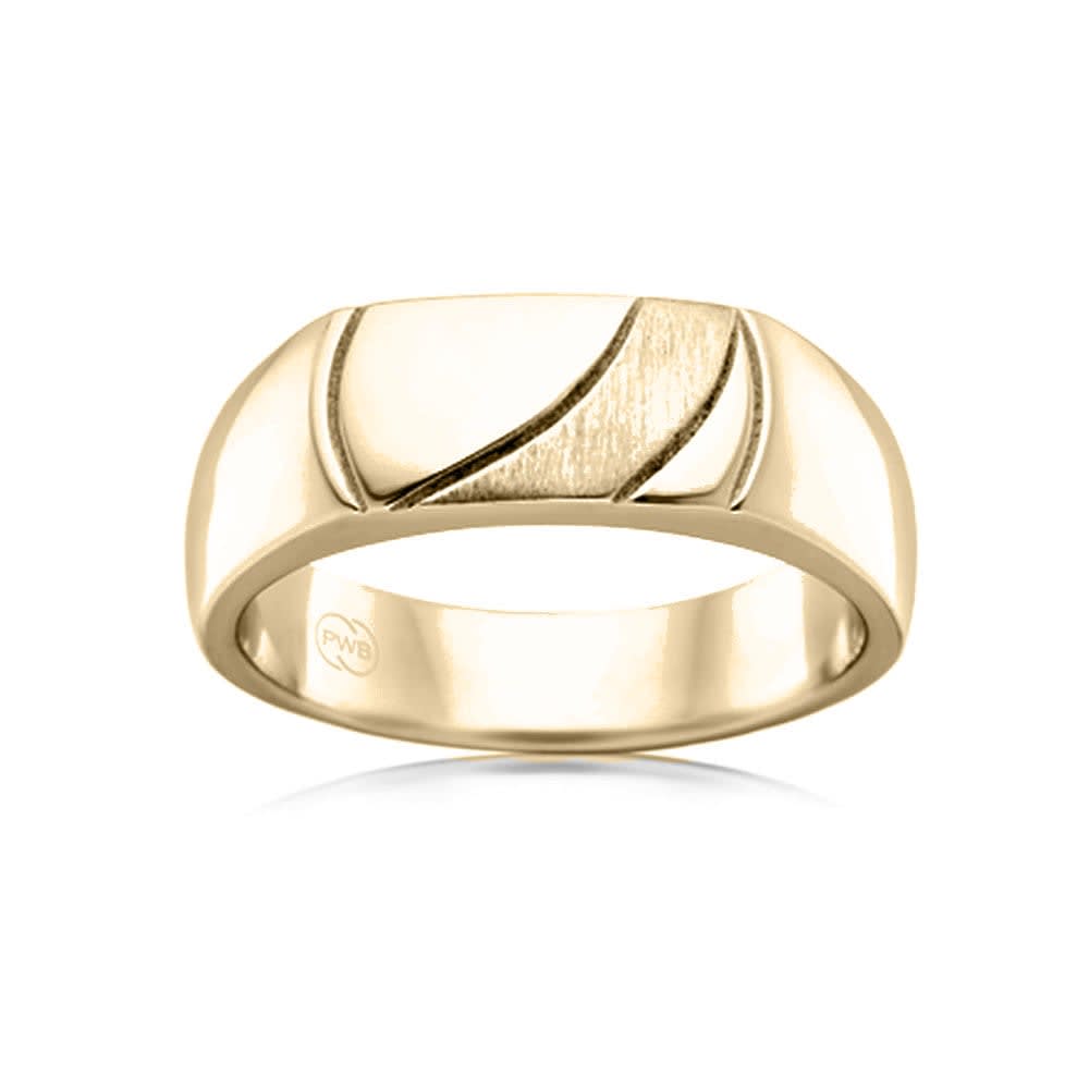 Make a statement with this striking 18K gold polished rectangle plate signet ring. This ring features hand-carved patterns on the signet frame and has a brushed finished unique design. This ring is available in 18K white, yellow, rose gold, platinum 600, and platinum 950. The jewellery is beautifully handmade to the highest standards. Shop directly from us and save over 40% when compared to high-street retail prices. We also offer unmatched 100 day returns. Buy online or book an appointment to visit our jewellery boutiques in Sydney and Melbourne.