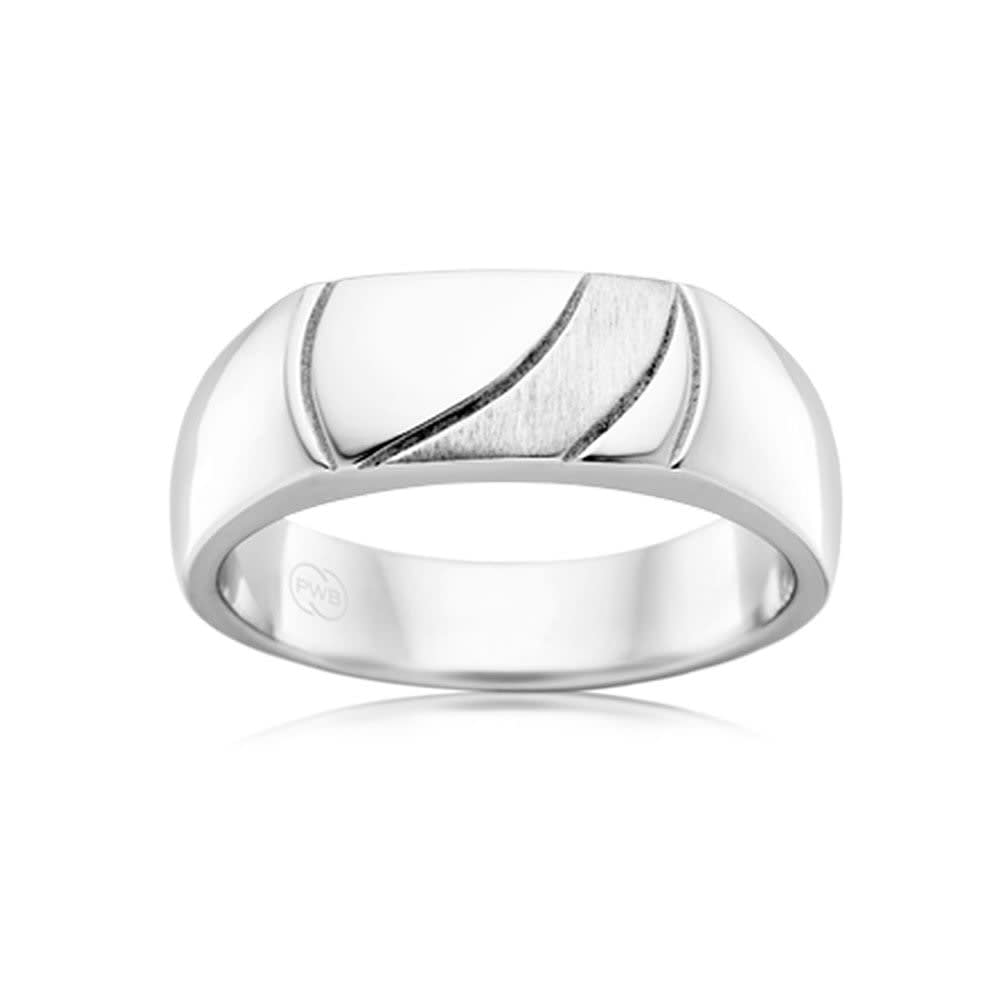 Make a statement with this striking 18K gold polished rectangle plate signet ring. This ring features hand-carved patterns on the signet frame and has a brushed finished unique design. This ring is available in 18K white, yellow, rose gold, platinum 600, and platinum 950. The jewellery is beautifully handmade to the highest standards. Shop directly from us and save over 40% when compared to high-street retail prices. We also offer unmatched 100 day returns. Buy online or book an appointment to visit our jewellery boutiques in Sydney and Melbourne.