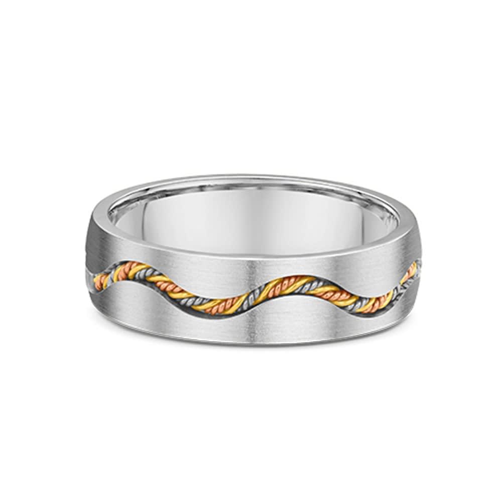 Elegant and intricately detailed, this men's wedding ring is perfect for saying I do. A bold mix of classic design and modern style, this handsome ring features a brushed central section, with braided mix metals. The braided metal is surrounded by a twisted white gold pattern on either side. The heavy metal gives it a very masculine feel to the ring. All rings are available in Platinum, 18K White, Yellow, Rose Gold and Titanium. Please contact us to know more about this ring or to request for a price on something specific you may have in mind. Being Australian based jewellery makers ourselves, we guarantee to beat any price. Temple and Grace are the only Australian jewellery store to offer a 100% peace-of-mind guarantee. It's simple, you either love your new ring or get your money back. Need it customised? Call us for a no-obligation quote.