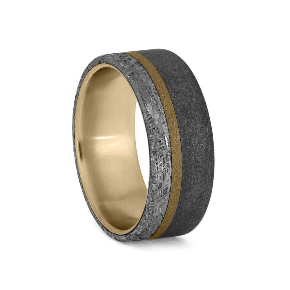 The rich color of 14k rose gold pairs beautifully with the sandblasted titanium on this meteorite ring. A pinstripe of rose gold and a stripe of meteorite contribute to this wedding band’s rugged yet luxurious aesthetic. This meteorite jewellery is an excellent wedding band choice for astronomers, space enthusiasts, and scientists! All Temple and Grace jewellery is beautifully crafted to the highest standards and is made at our jewellery workshop directly by us (skilled jewellery craftsmen). This is why you can save over 40% when compared to high-street retail prices. We also offer a lifetime warranty and unmatched 100 day returns. You can shop online or book an appointment to visit our jewellery boutiques in Sydney, Melbourne, Brisbane, Perth and Adelaide.