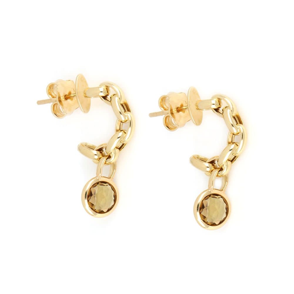 Creative and magical, these gold earrings have a playful charm that will garner all the attention. The classic gold circle design of these hoop earrings with the 1.5 carat sparkly brown whiskey quartz charms is trendy and elegant at the same time. These earrings are available in 18K white, yellow, rose gold, platinum 600, and platinum 950. The jewellery is beautifully handmade to the highest standards. Shop directly from us and save over 40% when compared to high-street retail prices. We also offer unmatched 100 day returns. Buy online or book an appointment to visit our jewellery boutiques in Sydney and Melbourne.