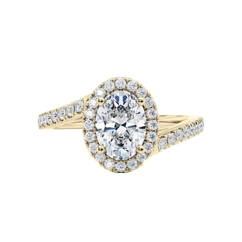 This ring is an elegant and timeless engagement design featuring an oval-cut diamond at its centre, surrounded by a shimmering halo of smaller diamonds that enhance its brilliance and visual impact. The band is also adorned with diamonds, adding continuous sparkle and creating a refined, luxurious look. Overall, it’s a classic yet eye-catching piece that combines a graceful elongated centre stone with layered brilliance for a sophisticated and romantic finish. All Temple and Grace jewellery is beautifully crafted to the highest standards and is made at our jewellery workshop directly by us (skilled jewellery craftsmen). This is why you can save over 40% when compared to high-street retail prices. We also offer a lifetime warranty and unmatched 100 day returns. You can shop online or book an appointment to visit our jewellery boutiques in Sydney, Melbourne, Brisbane, Perth and Adelaide.