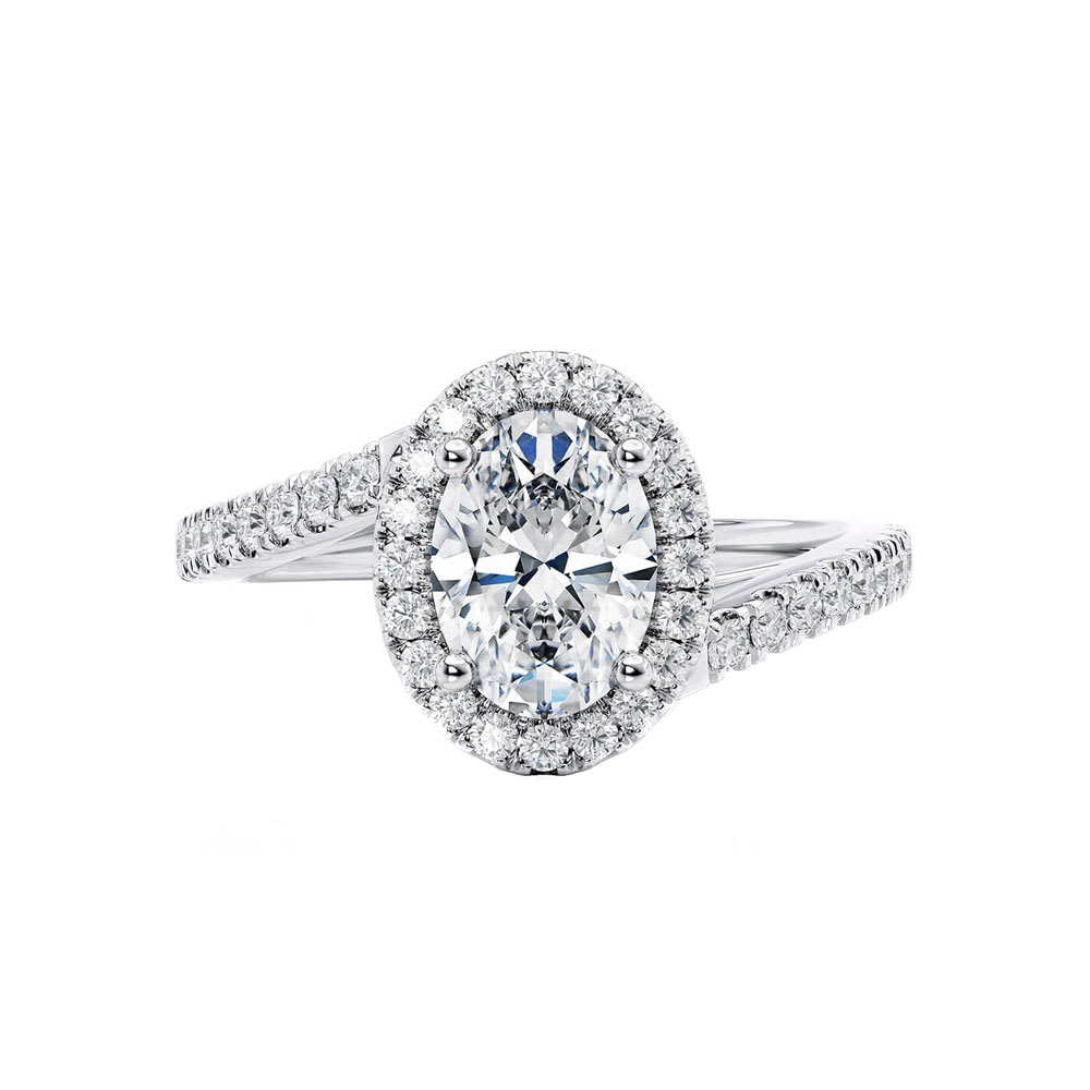 This ring is an elegant and timeless engagement design featuring an oval-cut diamond at its centre, surrounded by a shimmering halo of smaller diamonds that enhance its brilliance and visual impact. The band is also adorned with diamonds, adding continuous sparkle and creating a refined, luxurious look. Overall, it’s a classic yet eye-catching piece that combines a graceful elongated centre stone with layered brilliance for a sophisticated and romantic finish. All Temple and Grace jewellery is beautifully crafted to the highest standards and is made at our jewellery workshop directly by us (skilled jewellery craftsmen). This is why you can save over 40% when compared to high-street retail prices. We also offer a lifetime warranty and unmatched 100 day returns. You can shop online or book an appointment to visit our jewellery boutiques in Sydney, Melbourne, Brisbane, Perth and Adelaide.