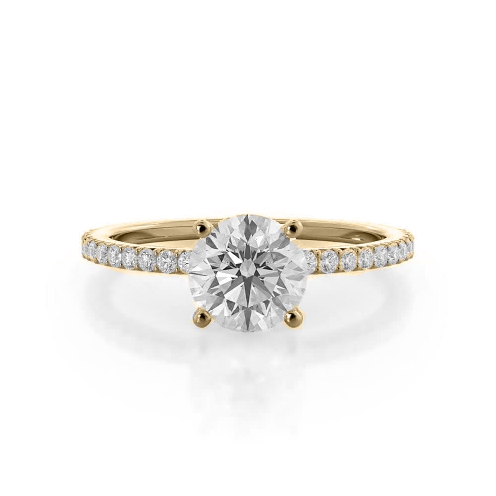This pretty engagement ring features a brilliant round cut lab grown diamond at the centre, which is held in place by four claw setting. The cut of the diamond ensures maximum brilliance. The shank of the ring is adorned with pave lab grown diamonds set halfway around, adding an extra touch of shimmer and shine to the overall design. All Temple and Grace jewellery is beautifully crafted to the highest standards and is made at our jewellery workshop directly by us (skilled jewellery craftsmen). This is why you can save over 40% when compared to high-street retail prices. We also offer a lifetime warranty and unmatched 100 day returns. You can shop online or book an appointment to visit our jewellery boutiques in Sydney, Melbourne, Brisbane and Perth.