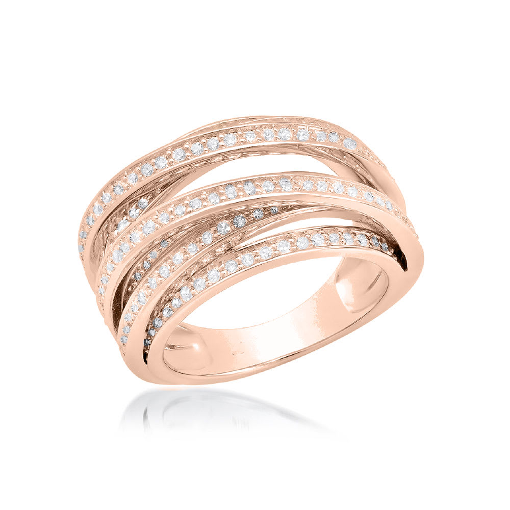 This women's diamond ring features a captivating crossband pattern that extends multiple rows and is adorned with round cut diamonds in an elegant channel setting. The diamonds are expertly placed and securely held in place, ensuring longevity and durability. The ring's style is attractive and versatile, making it suitable for various occasions. All Temple and Grace jewellery is beautifully crafted to the highest standards and is made at our jewellery workshop directly by us (skilled jewellery craftsmen). This is why you can save over 40% when compared to high-street retail prices. We also offer a lifetime warranty and unmatched 100 day returns. You can shop online or book an appointment to visit our jewellery boutiques in Sydney, Melbourne, Brisbane, Perth and Adelaide.