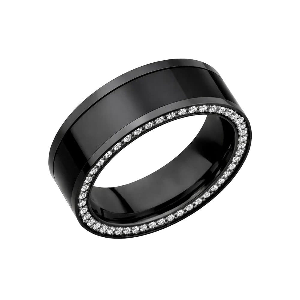 Featuring a stylish and modern appeal, this classic wedding band is designed in 18K Rose gold and lustrous Elysium. The polished finish of the ring strikes a perfect contrast with the beveled edges for added allure. They never change colour and they never get scratched or fade, and this is why they are an excellent choice for those looking for maintenance-free stunning black wedding rings. The jewellery is beautifully handmade to the highest standards. Shop directly from us and save over 40% when compared to high-street retail prices. We also offer unmatched 100 day returns. Buy online or book an appointment to visit our jewellery boutiques in Sydney and Melbourne.