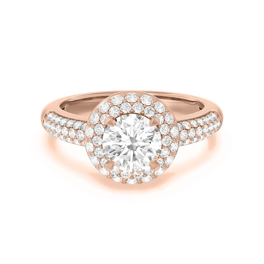This women's engagement ring features a round brilliant natural diamond as it's focal point. Stones are set in a double halo design, creating a falling effect that adds depth and dimension to the overall look. It's shanks are beautifully accented in a half way pattern, which adds a touch of elegance and sophistication to the design. This ring is a perfect symbol of love and commitment. All Temple and Grace jewellery is beautifully crafted to the highest standards and is made at our jewellery workshop directly by us (skilled jewellery craftsmen). This is why you can save over 40% when compared to high-street retail prices. We also offer a lifetime warranty and unmatched 100 day returns. You can shop online or book an appointment to visit our jewellery boutiques in Sydney, Melbourne, Brisbane, Perth and Adelaide.