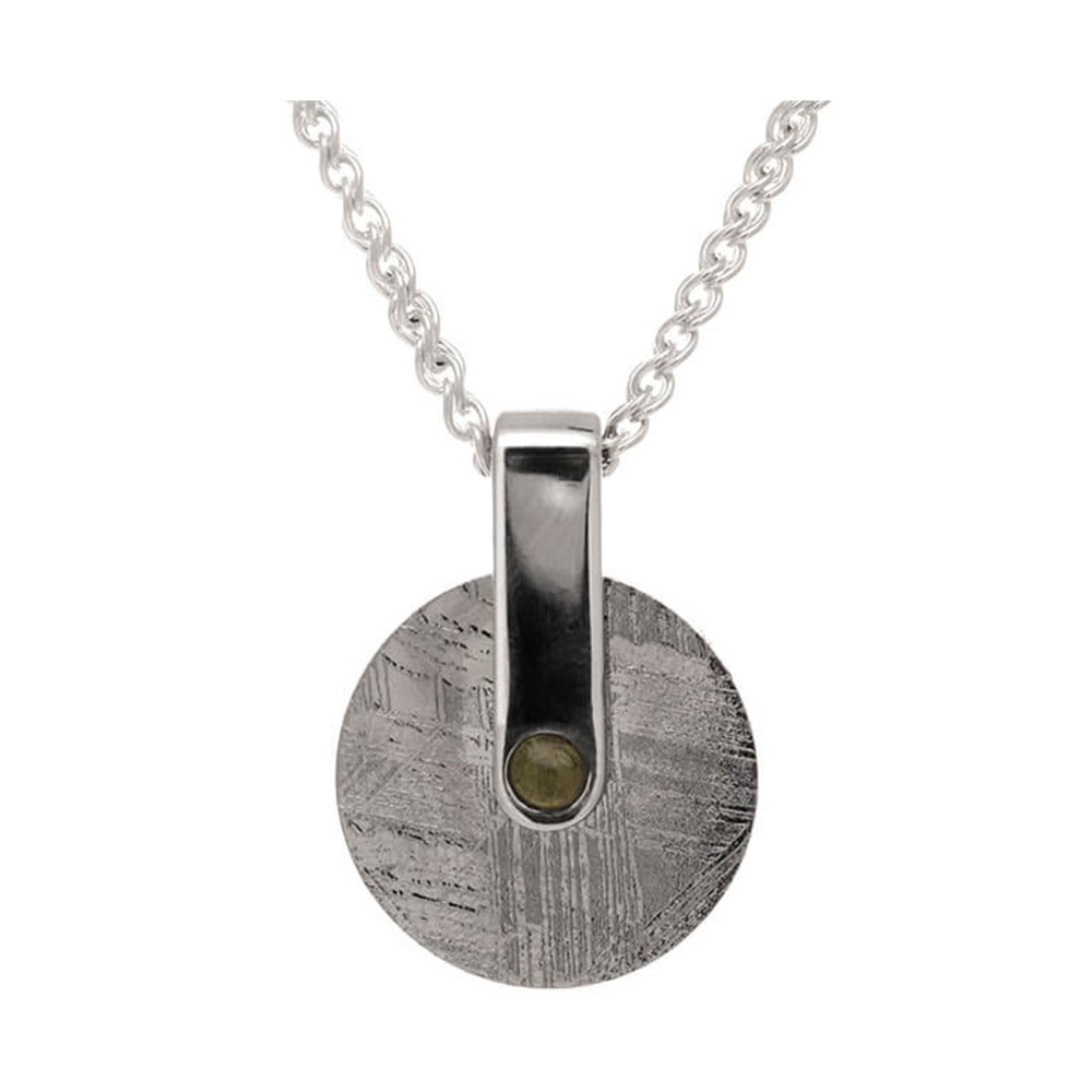 This women's necklace has a meteorite wheel pendant with an olive green moldavite hub as the focal point, adding a lovely pop of color to the piece. A polished silver bail holds the meteorite and moldavite, adding an elegant touch to the overall design. All Temple and Grace jewellery is beautifully crafted to the highest standards and is made at our jewellery workshop directly by us (skilled jewellery craftsmen). This is why you can save over 40% when compared to high-street retail prices. We also offer a lifetime warranty and unmatched 100 day returns. You can shop online or book an appointment to visit our jewellery boutiques in Sydney, Melbourne, Brisbane and Perth.