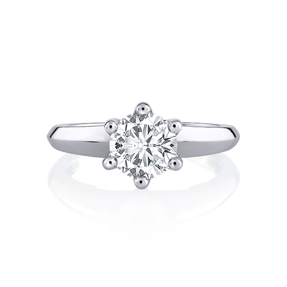 Simple yet modern, this six claw solitaire engagement ring is the essence of sophistication and style. It is fabricated in a beautiful glossy shank encrusted with a certified 0.60 carat sparkling diamond and offers a comfortable fit. Crafted in 18K white gold, this solitaire band is sure to draw the eyes. The ring is available in 18K white, yellow, rose gold, and platinum 950. The jewellery is beautifully handmade to the highest standards. Shop directly from us and save over 40% when compared to high-street retail prices. We also offer unmatched 100 day returns. Buy online or book an appointment to visit our jewellery boutiques in Sydney and Melbourne.
