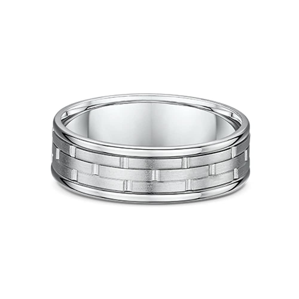 A men's wedding band that features architectural design, sleek, straight lines, and a matte finish. The modern brick pattern is simple but bold and makes this ring look gallant. This ring is available in 18K white, yellow, rose gold, platinum 600, and platinum 950. The jewellery is beautifully handmade to the highest standards. Shop directly from us and save over 40% when compared to high-street retail prices. We also offer unmatched 100 day returns. Buy online or book an appointment to visit our jewellery boutiques in Sydney, Melbourne and Brisbane.
