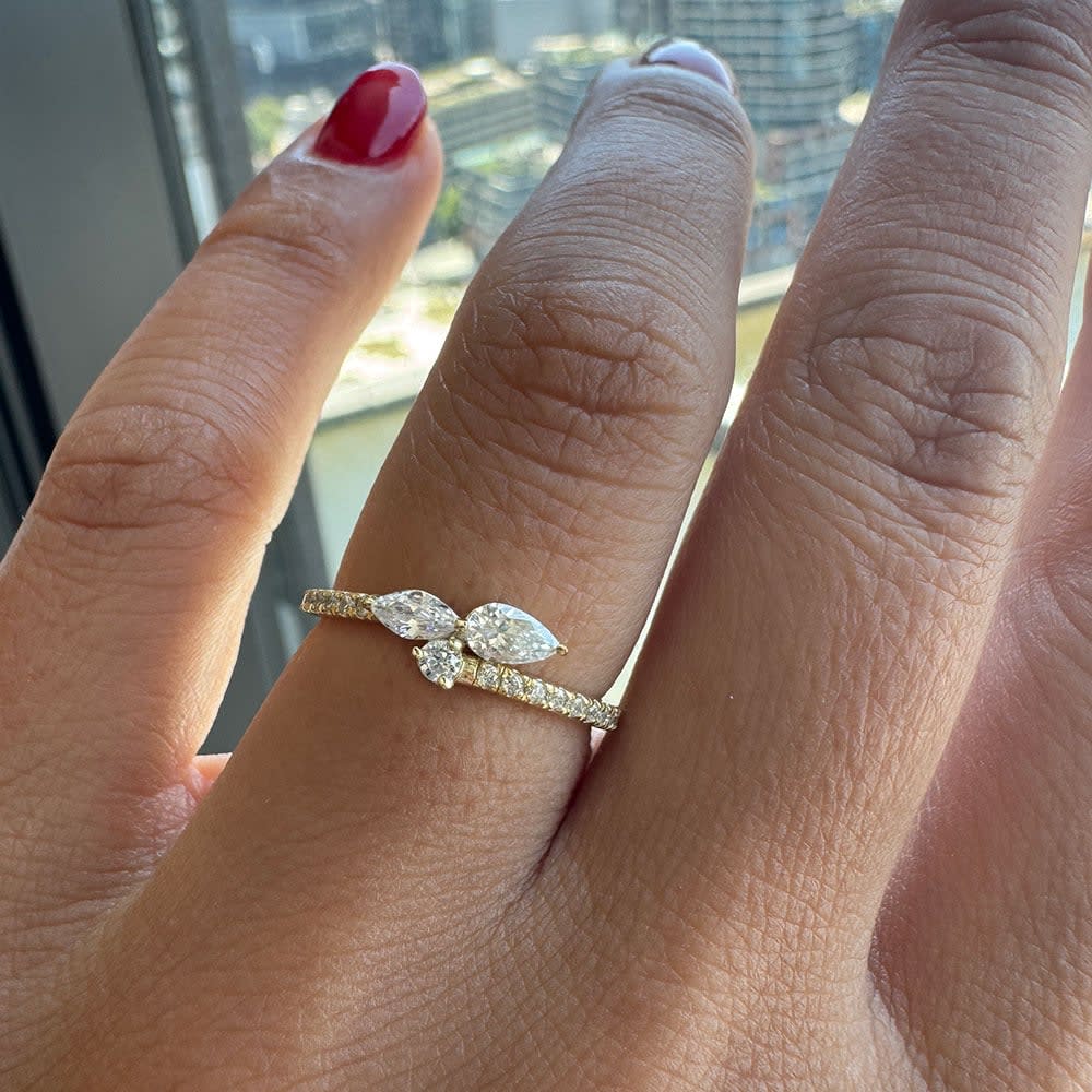 This exquisite band marries timeless sophistication with artistic brilliance. Alternating pear-cut diamonds with shimmering round diamonds, the design creates a poetic rhythm of sparkle and shape that catches light from every angle, evoking a dance of luminosity on your finger. All Temple and Grace jewellery is beautifully crafted to the highest standards and is made at our jewellery workshop directly by us (skilled jewellery craftsmen). This is why you can save over 40% when compared to high-street retail prices. We also offer a lifetime warranty and unmatched 100 day returns. You can shop online or book an appointment to visit our jewellery boutiques in Sydney, Melbourne, Brisbane, Perth and Adelaide.