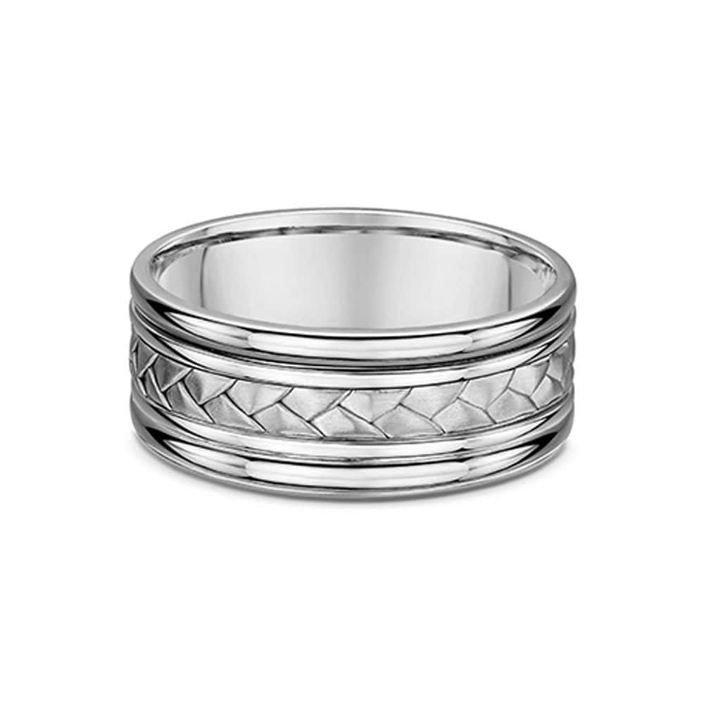 A men's wedding band featuring a polished two tone metal braided centre, along with highly polished round strips and edges. The two tone design is simple yet makes a bold statement of strength and power. This ring is available in 18K white, yellow, rose gold, platinum 600, and platinum 950. The jewellery is beautifully handmade to the highest standards. Shop directly from us and save over 40% when compared to high-street retail prices. We also offer unmatched 100 day returns. Buy online or book an appointment to visit our jewellery boutiques in Sydney, Melbourne and Brisbane.