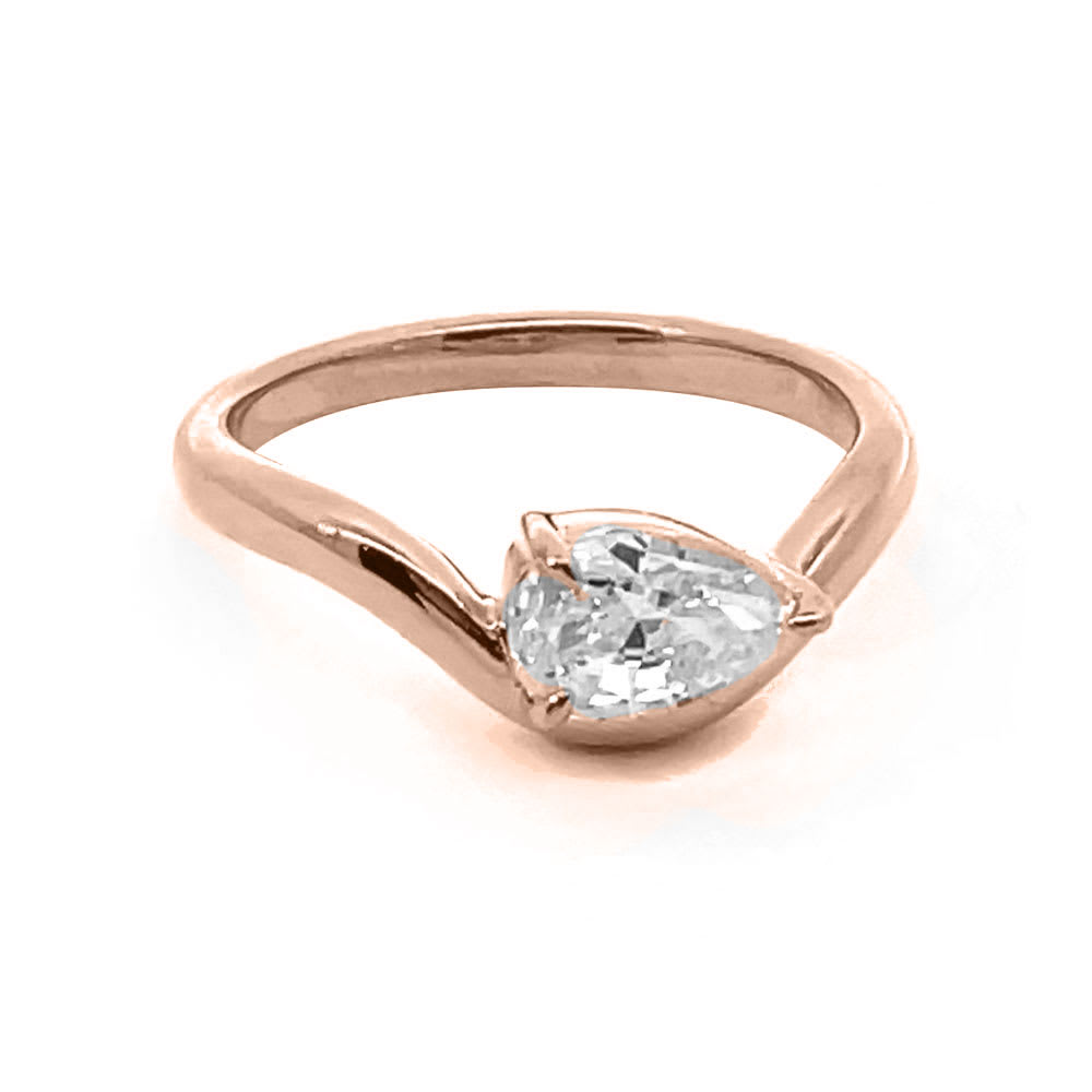 A stunning and modern Engagement ring. With a simple design yet very modern. The interesting design for this ring is that this ring can be worn as an engagement ring and wedding band at the same time. A GORGEOUS 1.00ct lab grown Pear cut diamond, featuring E colour and VVS1 clarity. A special diamond to live in many years of memories. You can find in our wedding band collection a curved wedding band to match and sit flush with this ring. If you like to have a different design an engagement ring then this is for you. Made with wonderful craftsmanship bin our professional jewellers. Available in rose, white and yellow gold. Ask our professional sales advisors for any assistance.