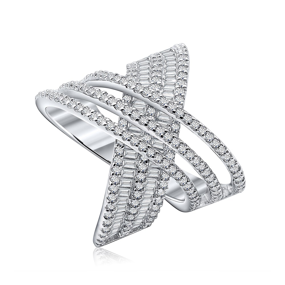 This women's ring standout feature is the amazing pattern created by a combination of round and baguette cut stones in an alternating fashion. The alternating round and baguette stones contribute to a sense of balance and visual interest, creating a mesmerizing pattern. In addition to the striking pattern, the ring is further overlapped by three split bands. Each band is adorned with round brilliant diamonds, adding a touch of sparkle and luxury to the overall composition. All Temple and Grace jewellery is beautifully crafted to the highest standards and is made at our jewellery workshop directly by us (skilled jewellery craftsmen). This is why you can save over 40% when compared to high-street retail prices. We also offer a lifetime warranty and unmatched 100 day returns. You can shop online or book an appointment to visit our jewellery boutiques in Sydney, Melbourne, Brisbane, Perth and Adelaide.