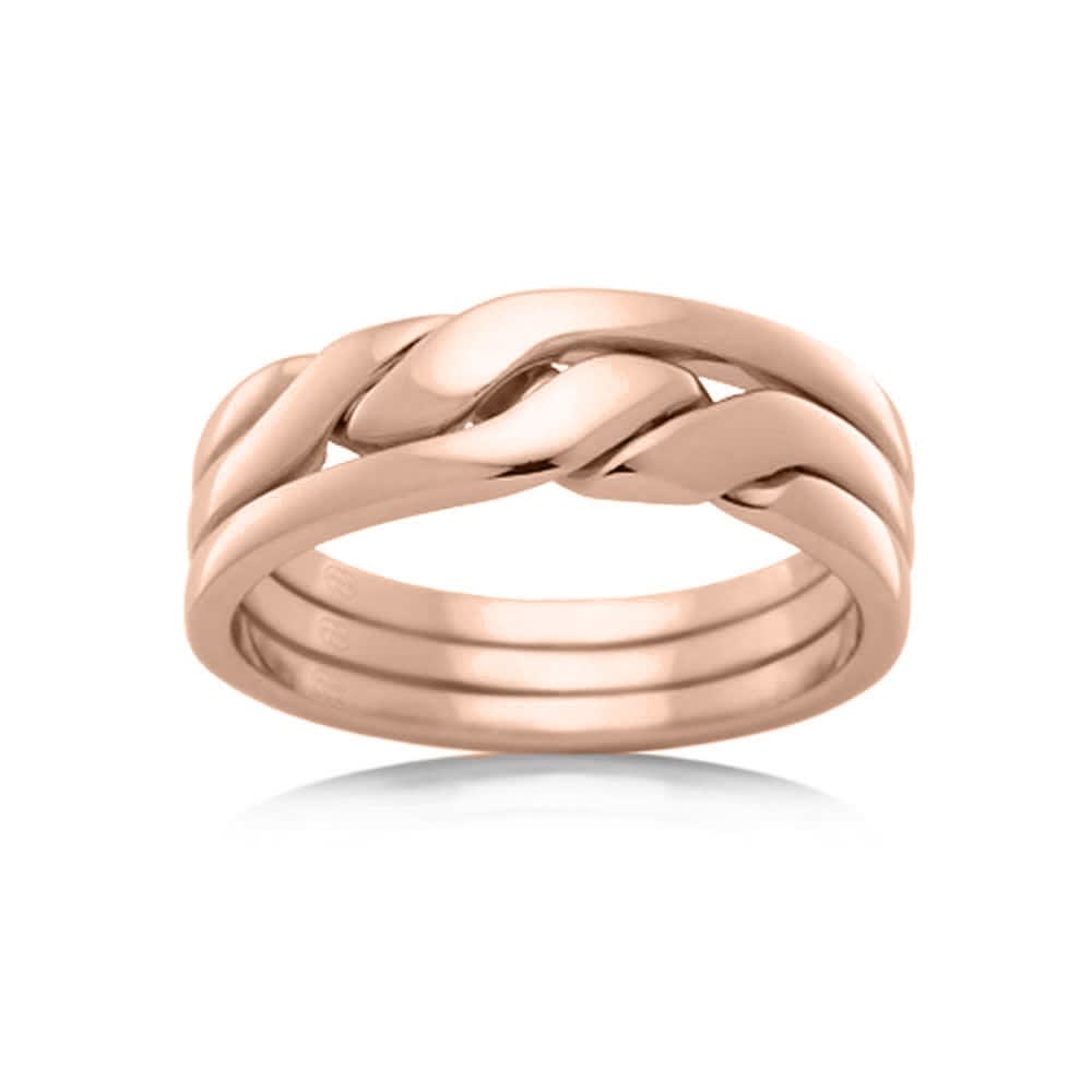 Adorned with a diagonally twisted rope pattern, this exquisite wedding band is crafted in 18K yellow gold. This ring features three rows of plain gold bands with a glossy finish and comes with a comfortable snug fit. This ring is available in 18K white, yellow, rose gold, platinum 600, and platinum 950. The jewellery is beautifully handmade to the highest standards. Shop directly from us and save over 40% when compared to high-street retail prices. We also offer unmatched 100 day returns. Buy online or book an appointment to visit our jewellery boutiques in Sydney and Melbourne.